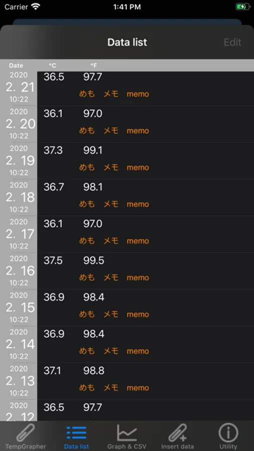 And you can check your temperature record with line graph with the both of Celsius and Fahrenheit.