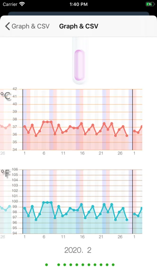 Temperature data are saved at default Calendar App on iOS. You can check the date and data with default Calendar.
