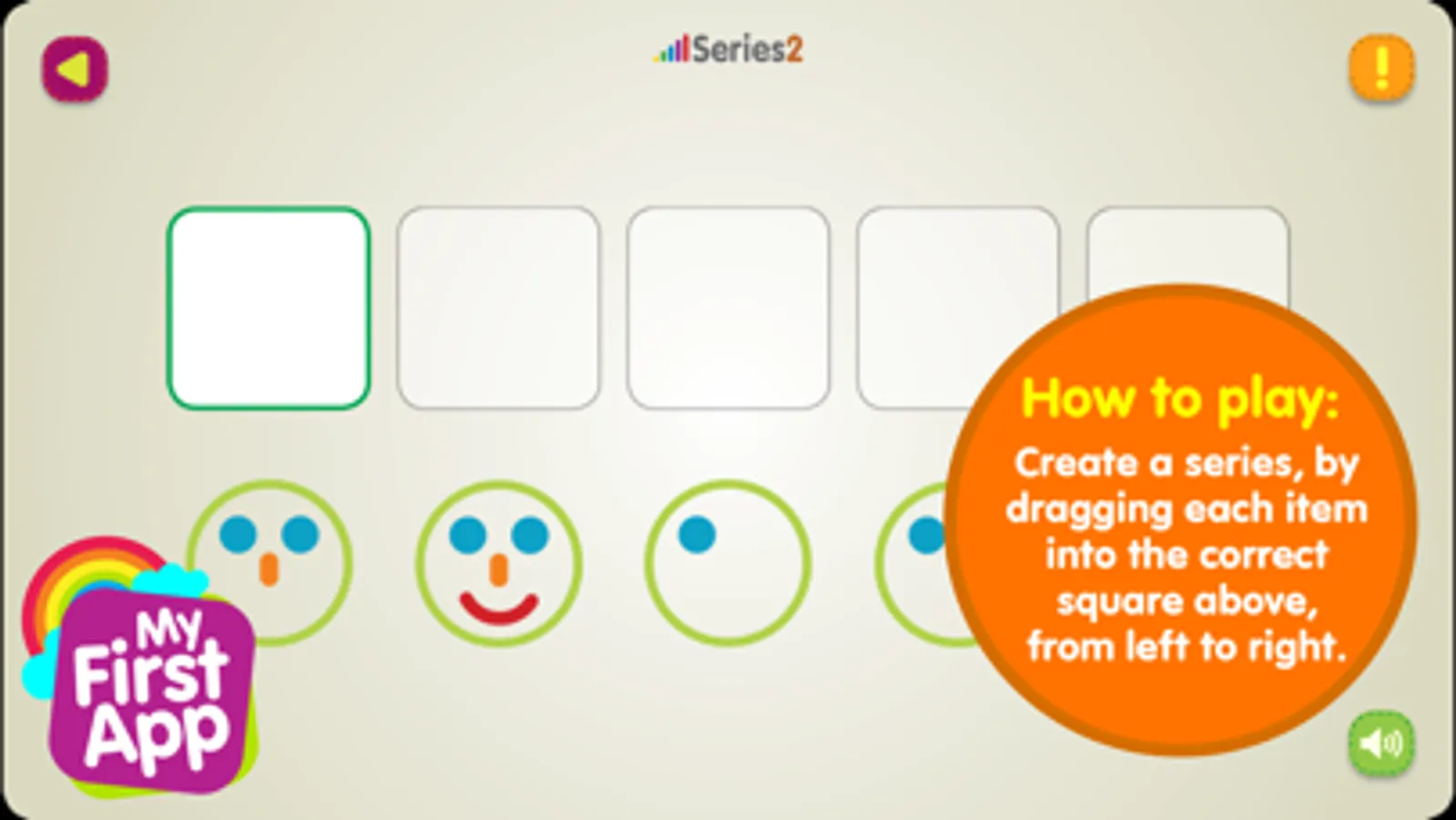 This game is one of a series of educational games for kids by MyFirstApp.com. We believe that learning, playing, exploring and experimenting is what children do best. Children are fascinated with the wonderful, exciting world around them. With the touch pads revolution a whole new world of games is evolving - opening new horizons for the very young. Thus, young children can now enjoy colorful, exciting new games, helping them acquire new cognitive and fine motor skills. MyFirstApp.com helps bringing this new and enriching world to the curious little fingers of young children.