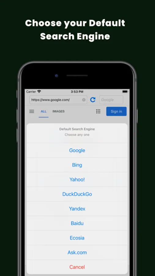 Google, Bing, Yahoo, DuckDuckGo, Yandex, Baidu, Ecosia, Ask.com