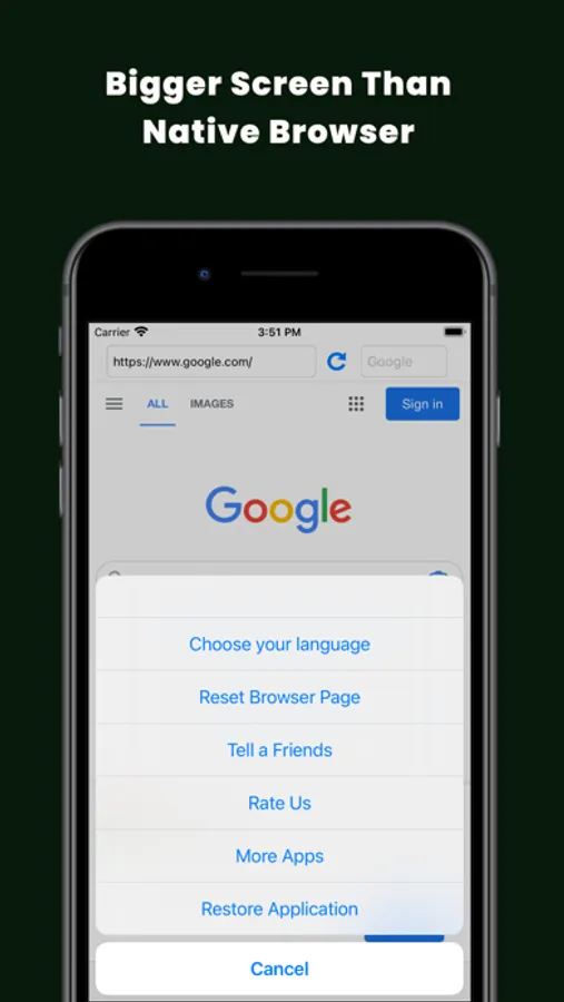 The Full Screen Private Web Browser Incognito is available for the iPhone/iPod Touch & iPad. This app gives you up to 40% of your screen's real estate back by hiding the buttons, address and even the status bar when you don't need them. Now you can take full advantage of the screen of your device. Private Browser is a web browser that is focused mainly on your privacy.