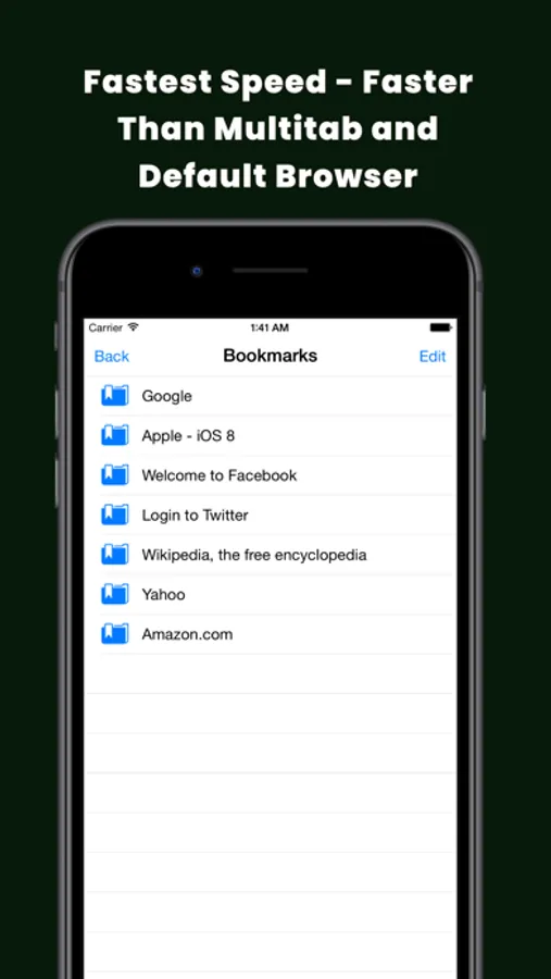 Bookmark your favorite webpages for easier navigation. Add, delete, reorder and edit bookmarks just like in Safari.