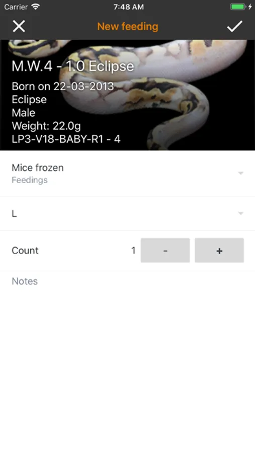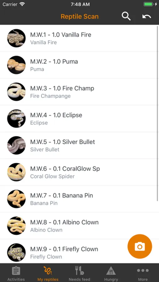 Using Reptile Scan is super easy, the system can generate QR codes for your reptiles and these are scannable by the app. Register feedings with a scan and and a few taps on your device. You can even feed a whole rack with a single scan.