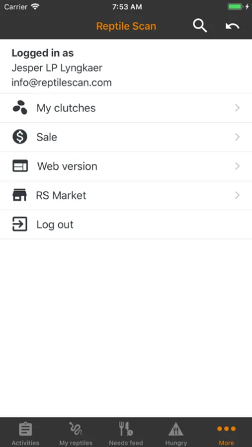 The app gives you free access to a web system where all your data is stored and backed up. In the web system you can also maintain your reptiles in the same way as in the app.
