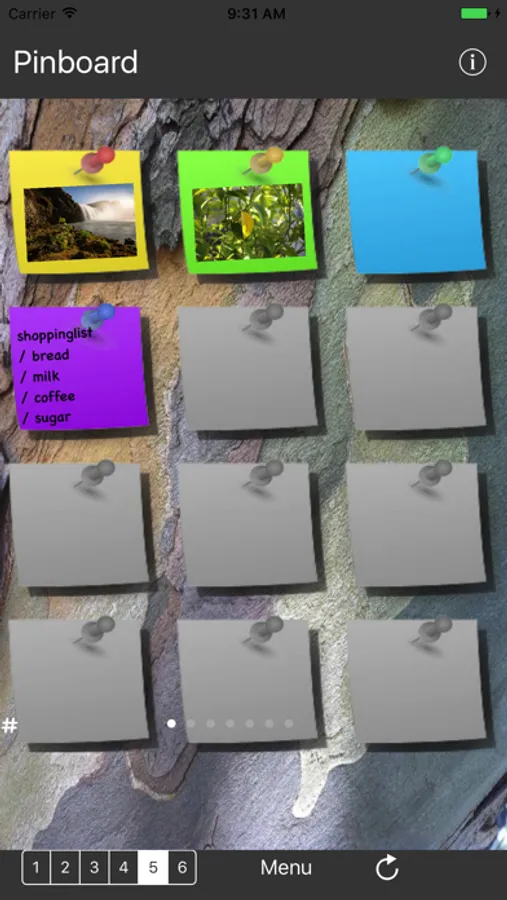 Create small notes in different colors and view photos on the wall.