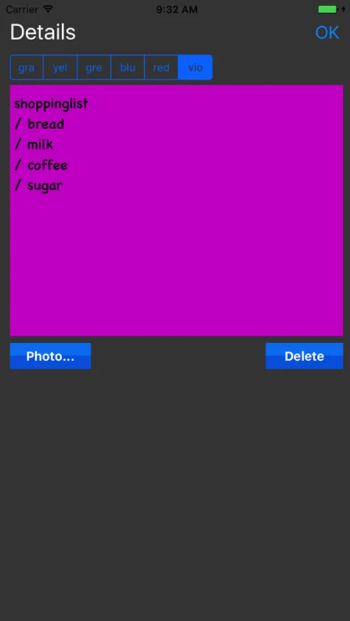 - Delete text or photo removed > remove a note