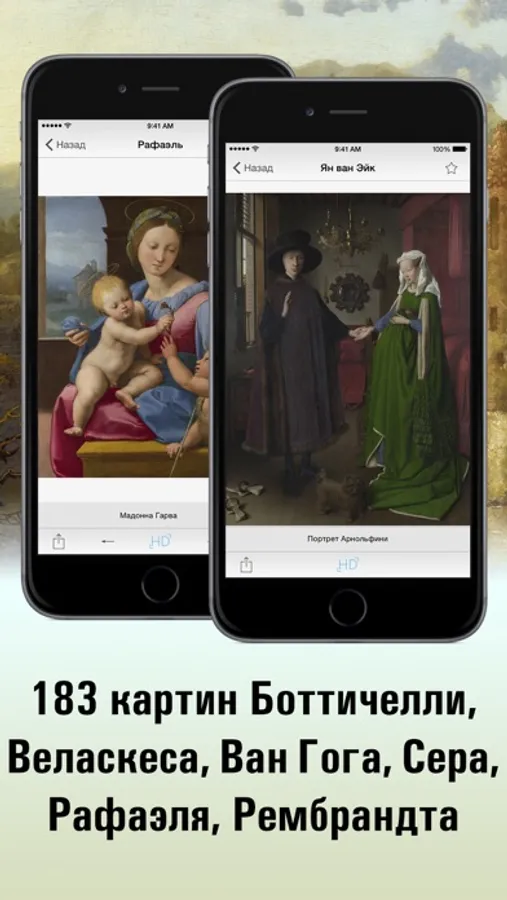 Art gallery in your pocket. App presents a unique opportunity to enjoy the masterpieces of world art at any time. Maybe, you are going the subway, or standing in a traffic jam with our app you can use this time to visit the world of Rubens, Titian and Rembrandt.