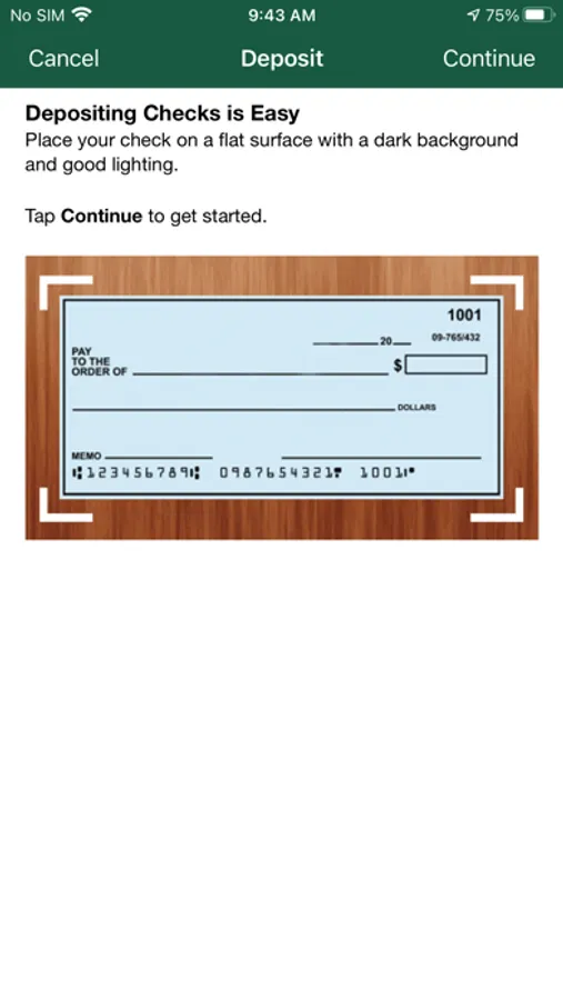 - Deposit checks while on the go with your device