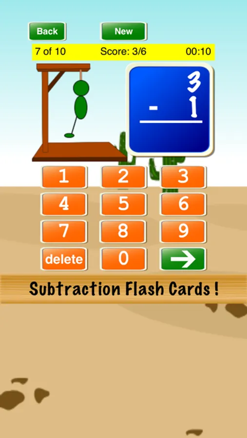 Subtraction Flash Cards ! is a combination of both math flash cards and hangman in one. Complete the problem set in time without making too many mistakes to avoid hanging the man.