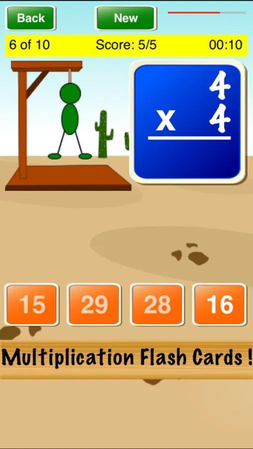 Multiplication Flash Cards ! is a combination of both math flash cards and hangman in one. Complete the problem set in time without making too many mistakes to avoid hanging the man.