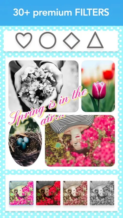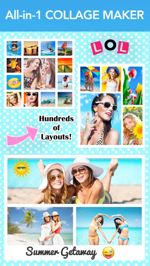 Snap Collage packs a simple design with a powerful editor to give you everything you could possibly want to make your photo's simply amazing. All 120+ layouts are FREE!!! In fact almost all the features are FREE! You will love the endless combinations of patterns, stickers, text, borders, filters, shapes, frames and more.