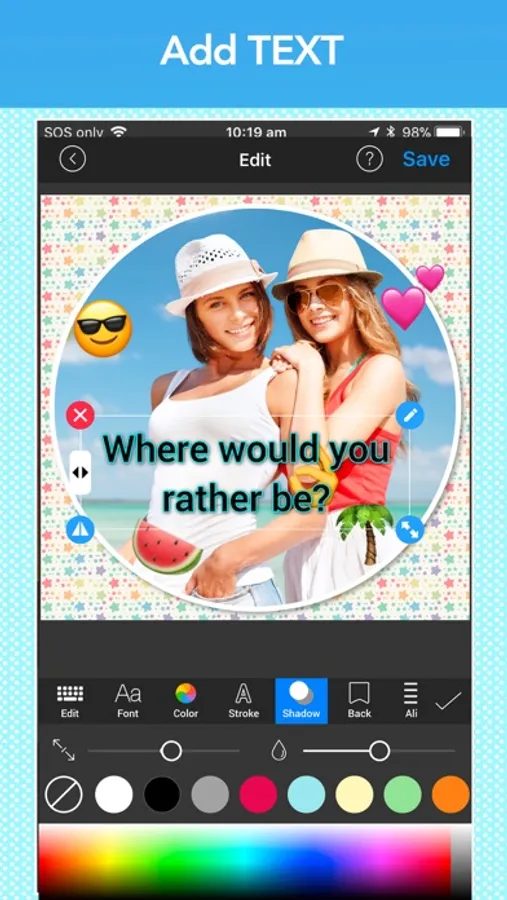 • Save to Camera Roll or share your masterpiece on your favorite social media networks including Facebook, Twitter and Instagram.