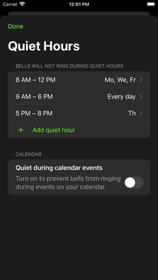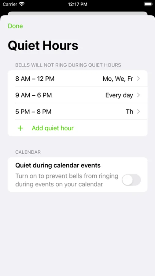 • Schedule repeating Quiet Hours that will mute the bell when you know you'll be busy.