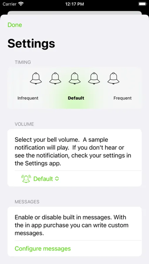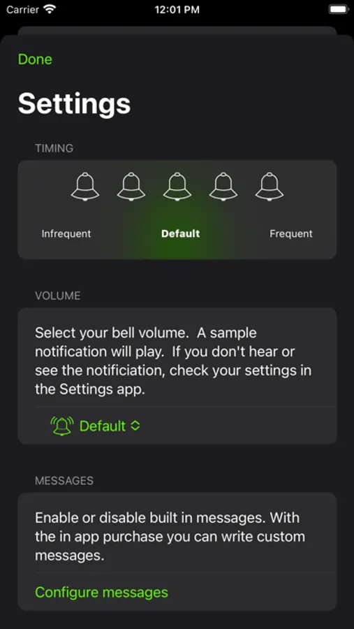• Adjust the timing of the random bell, use the slider in the settings to find the timing that's right for you (see below).