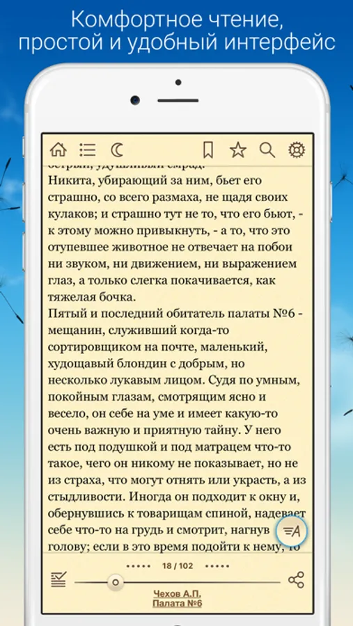 • Автоматическая закладка (произведение откроется там, где оно было "закрыто" в последний раз)