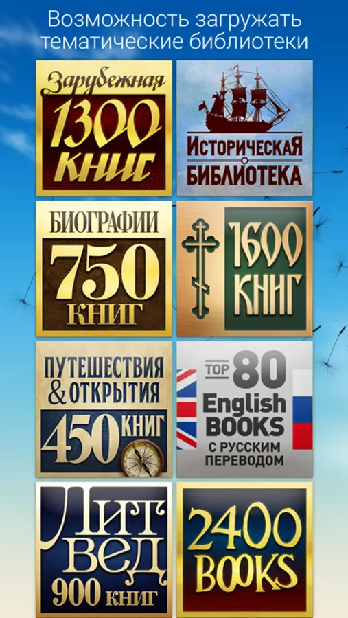 Теперь не нужно искать книги в интернете: установив это приложение, вы всегда будете иметь под рукой огромное собрание книг лучших отечественных писателей. Разумеется, в списке из 1100 авторов вы найдете Чехова, Толстого, Достоевского, Тургенева, Гоголя, Пушкина, Лермонтова, Есенина, Горького и многих других.
