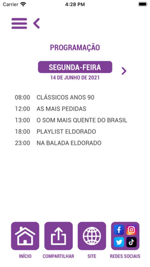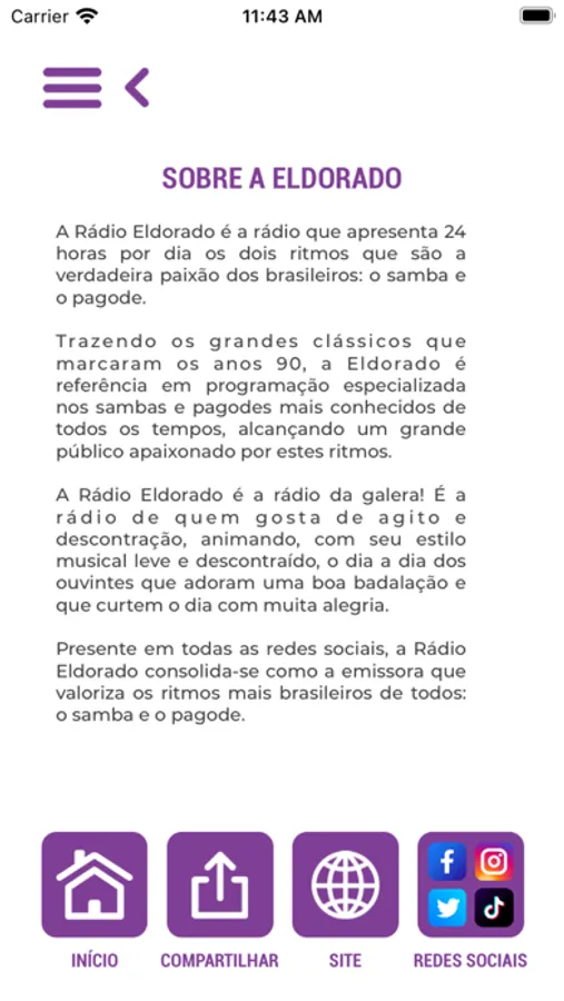 Aplicativo da Rádio Eldorado, uma emissora da Rede Pampa de Comunicação.