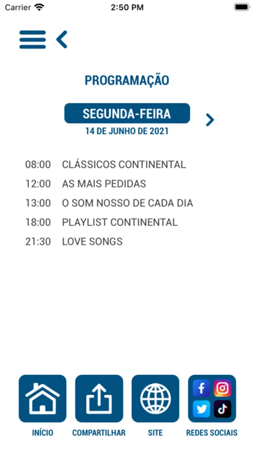 Aplicativo da Rádio Continental, uma emissora da Rede Pampa de Comunicação.