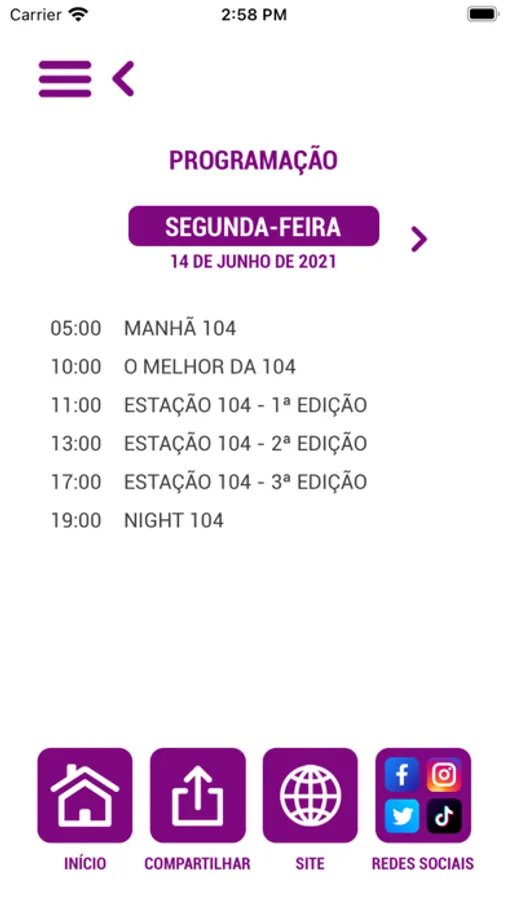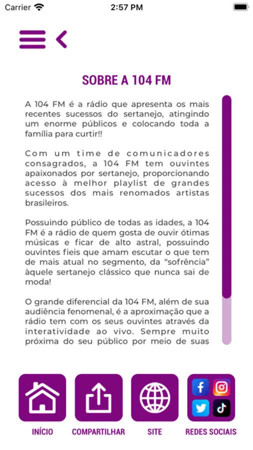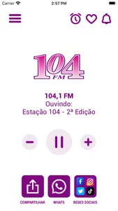 Aplicativo da Rádio 104 FM, uma emissora da Rede Pampa de Comunicação.