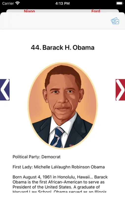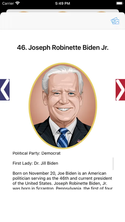 Get information about every U.S. President in one place. Practice using the flash card mode. Then play a game of trivia to see what you've learned.