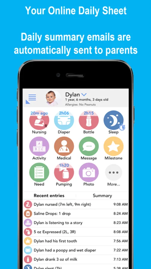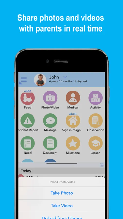 - Post photos, videos, activities, meals, incident reports, and more