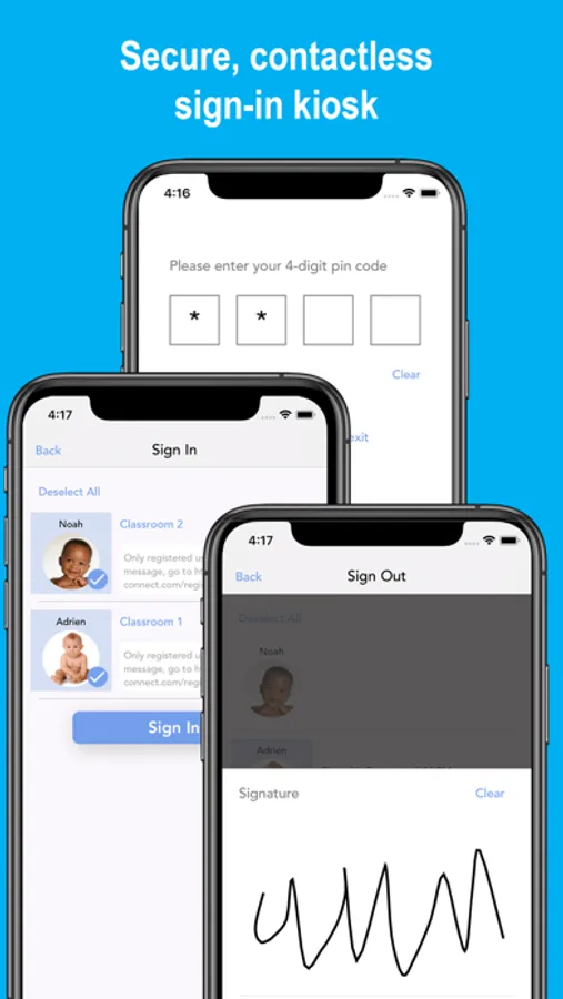 - Parents securely sign in their child with a QR Code or unique PIN