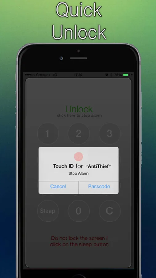 when you put your iPhone on the desktop in your office, anyone can just take it and run away, so when someone will take your iPhone the iPhone will play a sound (Alarm) and will lock the app... that mean you can stop the Alarm only with the Passcode you was set in the first step...