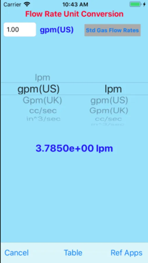 6. Flow rate (lpm, gpm, cc/sec, ci/sec)