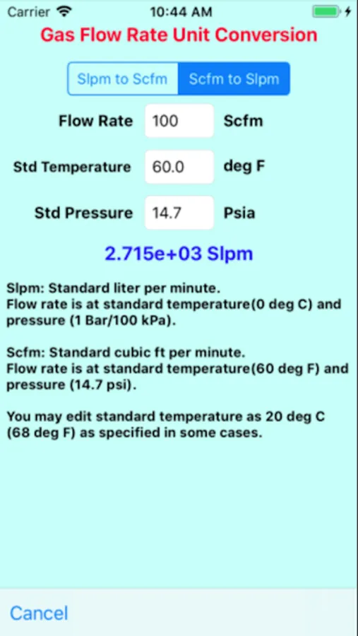 There is a separate section under Flow Rate category for gas flow rate conversion. One can quickly convert gas flow rate in Slpm to Scfm and vice verse as shown in the screen shot.