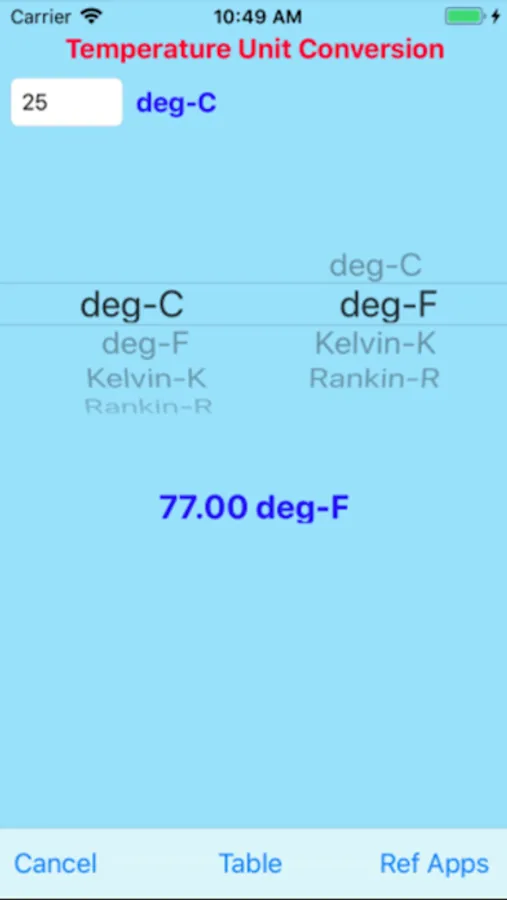 5. Temperature (deg C, deg F, Kelvin, Rankin)