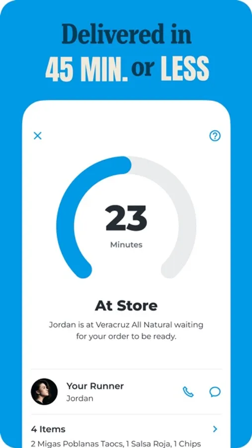 Stay safe and healthy with Doorstep Deliveries, a 100% contact-free delivery experience. Your order will be dropped off at your door, and you can still contact your Runner by text.