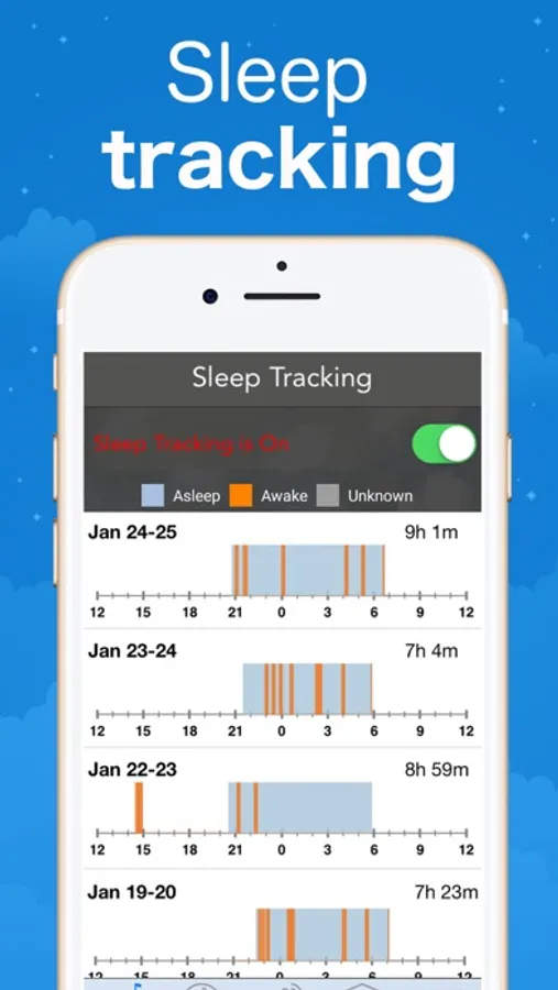 - Sleep tracking (learn your baby's sleep pattern to help her sleep through the night)