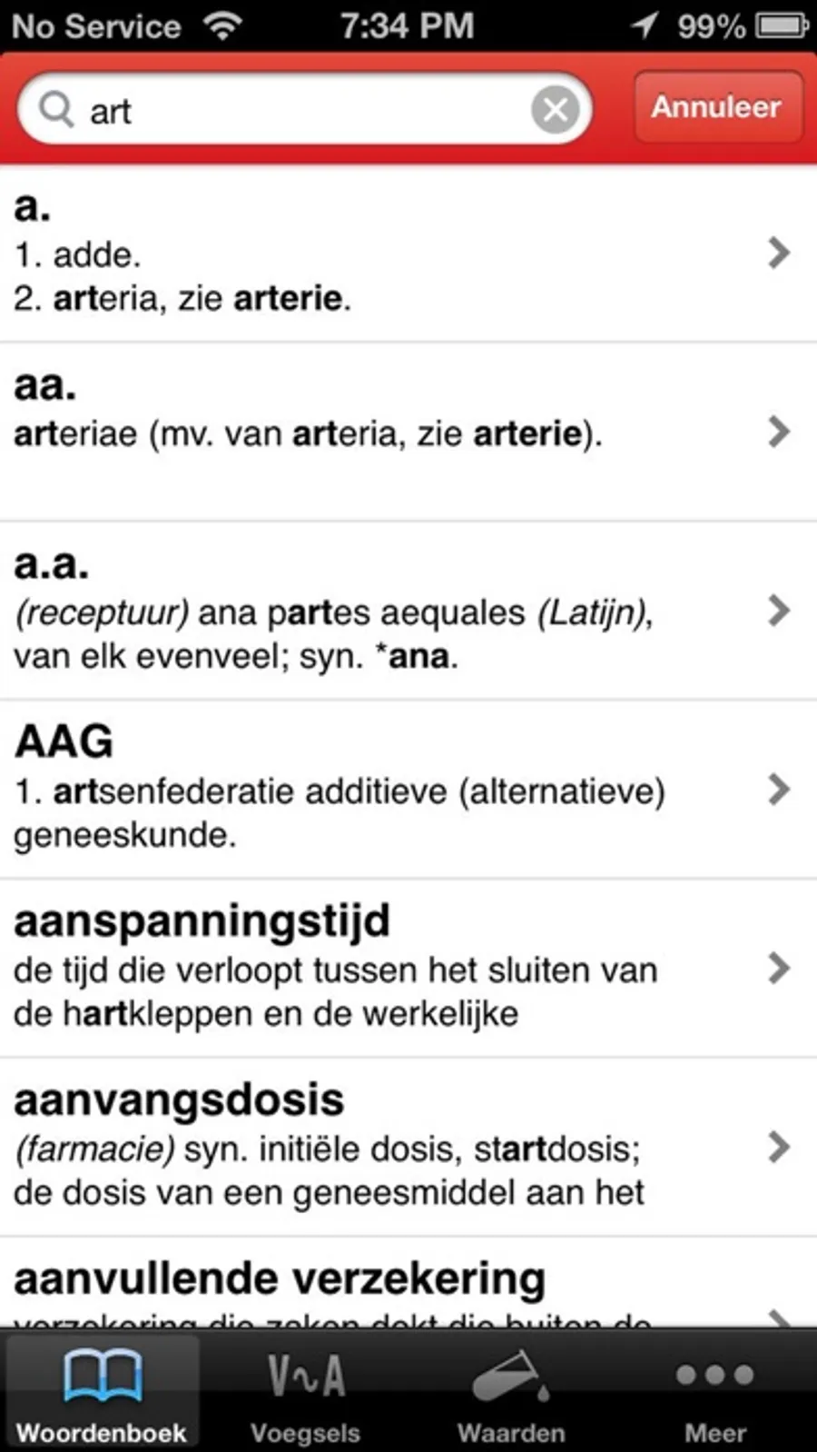 Het woordenboek kan worden gebruikt op een iPhone, iPad en iPod Touch. De app heeft de volgende pluspunten: