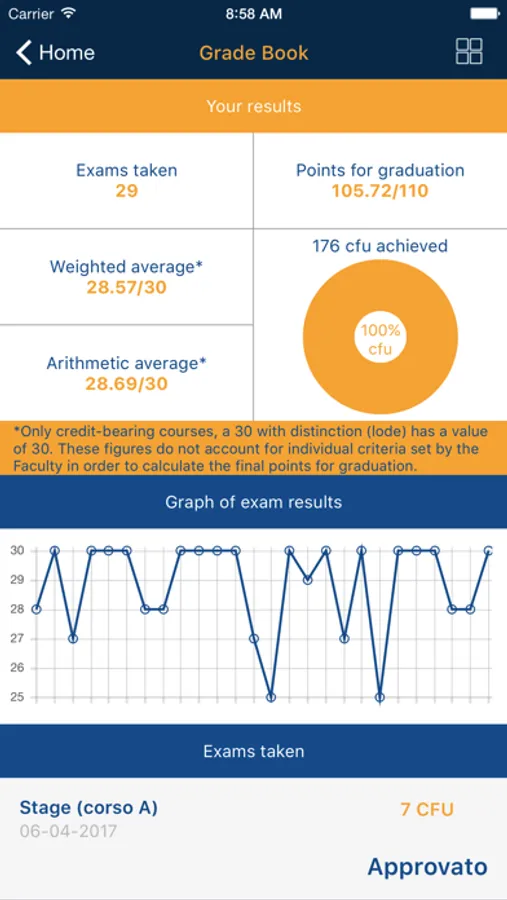 • view their progress in their studies (grades and credits accumulated, grade performance graph, etc.);