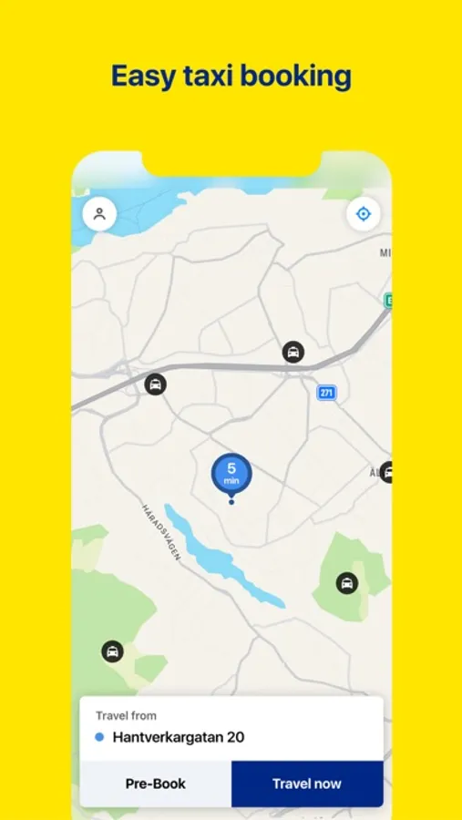We notify you both when the taxi is on its way and when it has arrived. You can also follow your car directly on the map. The app provides you with the taxi's car number so you can smoothly and easily find your car! You find the taxi's car number on the back of the taxi sign.