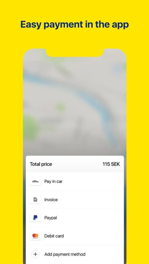 - You can easily select different payment options (in car, CreditCard or Paypal)