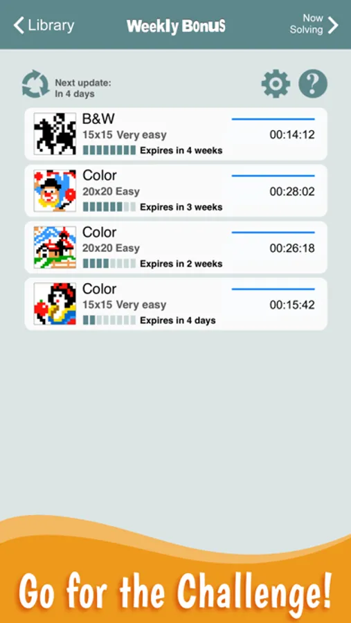 For more fun, Pic-a-Pix includes a Weekly Bonus section providing an extra free puzzle each week.
