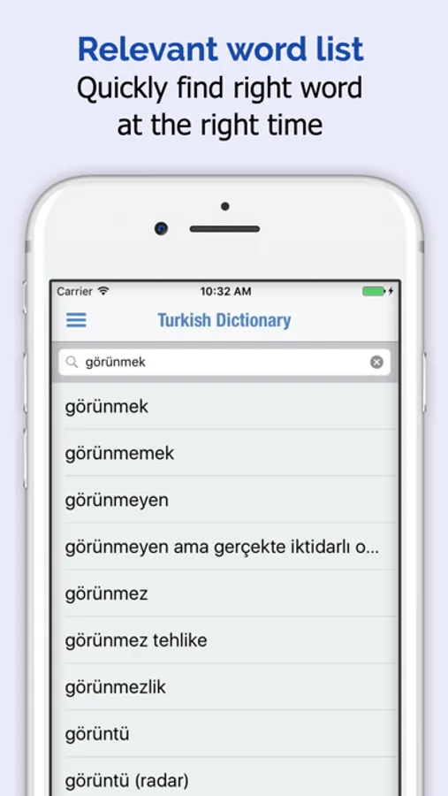 • Bilingual English to Turkish and Turkish to English dictionary