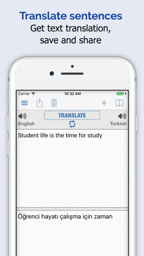 • Turkish to English word and phrase translator and translation