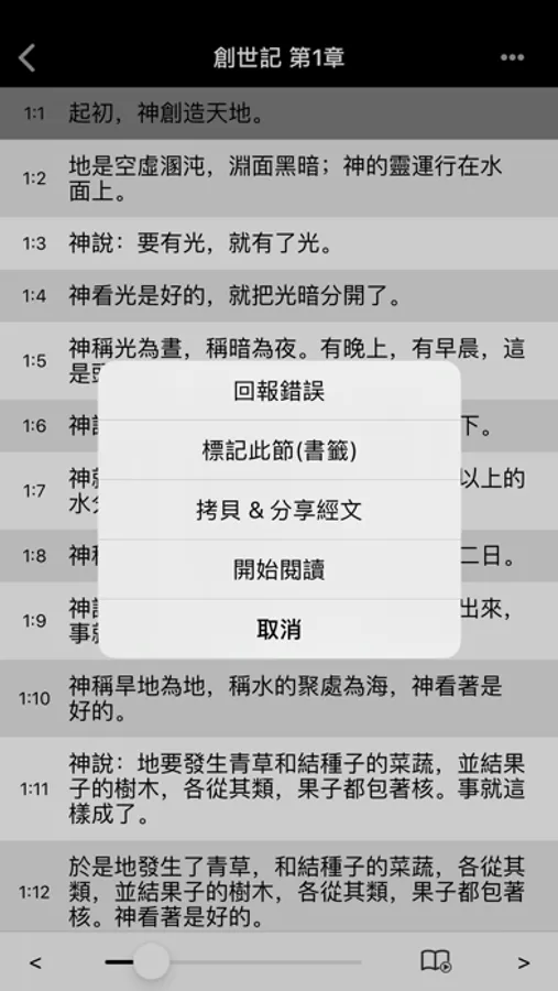 ● 對經文點兩下即可多節複製、分享經節、書籤功能等...