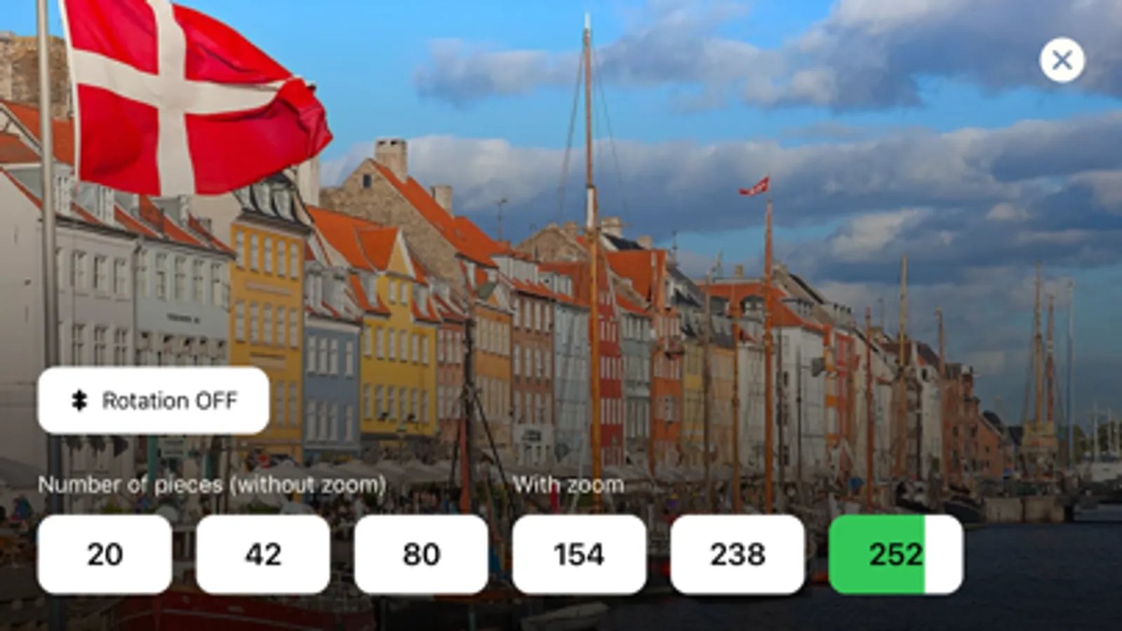 - 8 levels of complexity: from  20 pieces up to 1110 pieces, available for any puzzle;