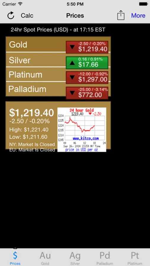 Live quotes, charts, prices, news and calculations for all precious metals at any purity in any measurement scale. Includes weights in over a dozen scales including troy ounces, grams, kilograms and more. Great for scrap metal buyers, sellers of jewelry and traders. Find out what your jewelry is worth!