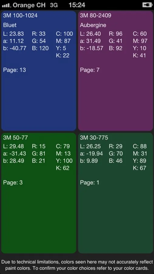Selected colour shows up on the screen of iPhone, iPad or iPod touch, including its reference number and RGB values (this doesn’t apply to metallic colors).