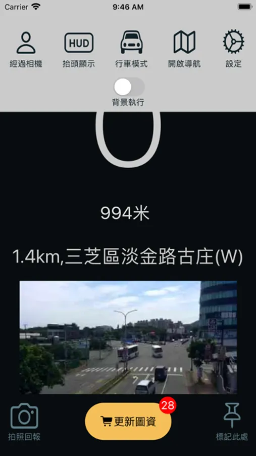 3.在確定有定位及音量的狀態下,駕駛中,遇到像機,程式就會提示。