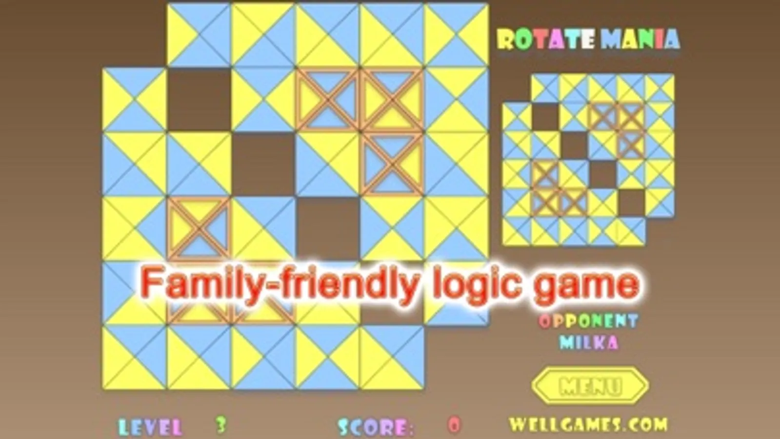 Turn the world upside down with this multiplayer brainteaser. Rotating groups of triangles, match four or more of one color to make them disappear. To complete the level in this great puzzle game you need to remove triangles under the golden frames. Play this multiplayer game and pass all tricky puzzle levels which get more and more complicated. Compete with other players online in the multiplayer mode and try to finish all brainteasers faster than them.