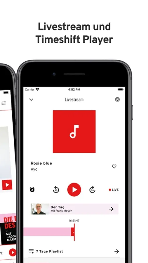 Mit der neuen App erfüllen wir einen der dringendsten Wünsche unserer Nutzerinnen und Nutzer: Alle Musiksendungen, Podcasts und Beiträge können ab sofort beliebig vor und zurück gespult werden.