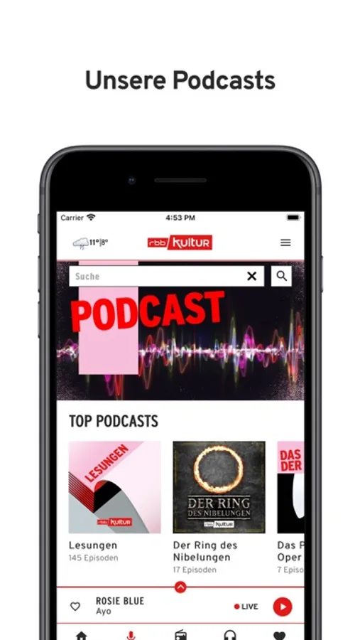 Unsere Musik-Spezialsendungen und ausgewählte Konzertübertragungen stehen wie bisher zum Nachhören bereit. Sie können sich in der App Lesungen, Beiträge, einzelne oder abonnierte Podcasts, Musiksendungen und Interviews als Favoriten abspeichern und bei Gelegenheit nachhören.