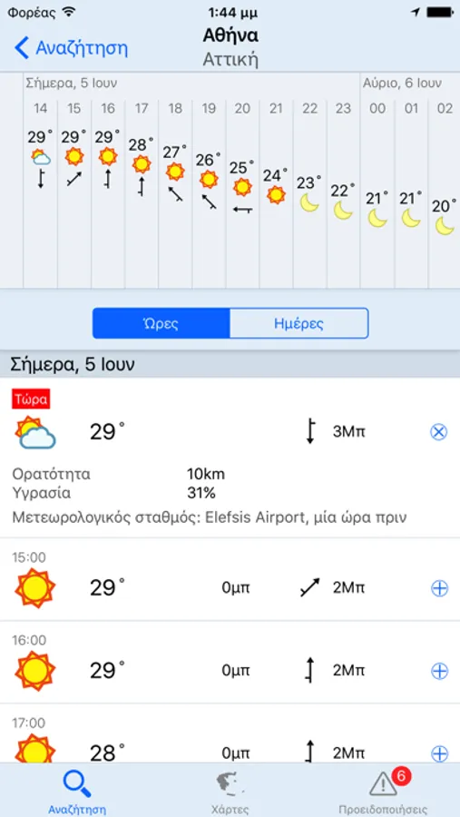 - Ωριαίες για τις επόμενες 2 ημέρες