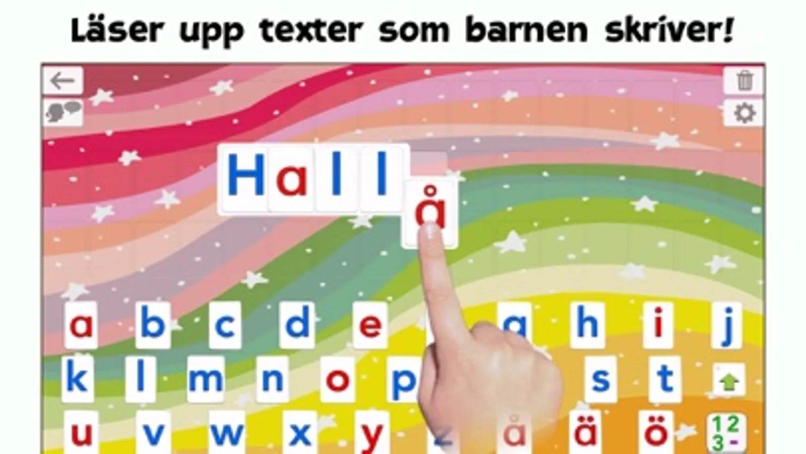 • Many settings to adapt the activities to the child’s needs (letter size, keyboard layout, assign images to words, disable some letters, high contrast modes for kids with visual impairment,...)