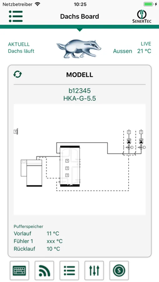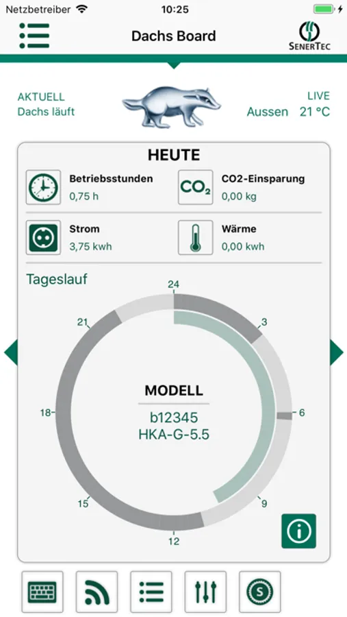 The DachsApp shows you the current operating data of your Dachs in a graphically clear format.